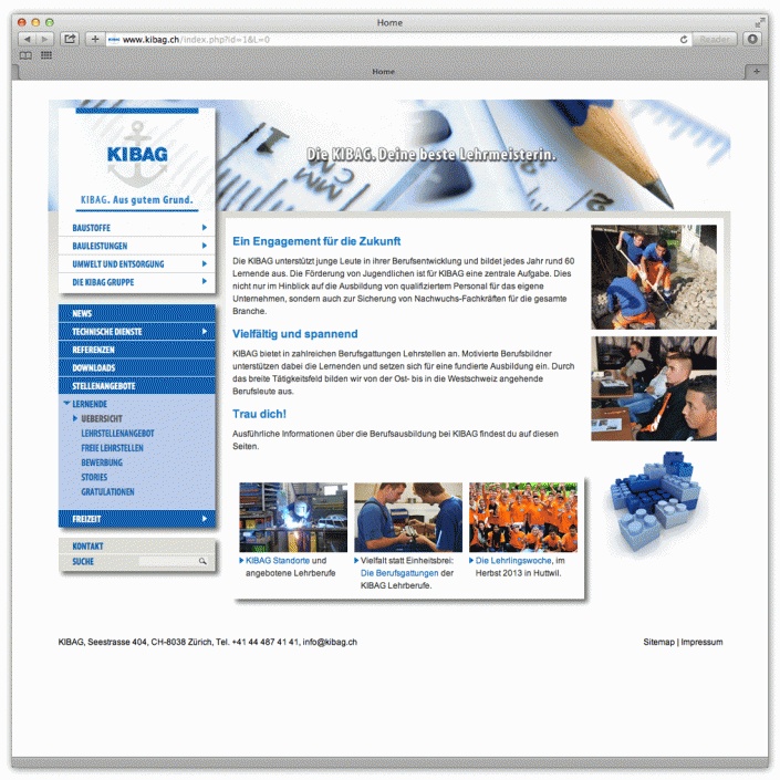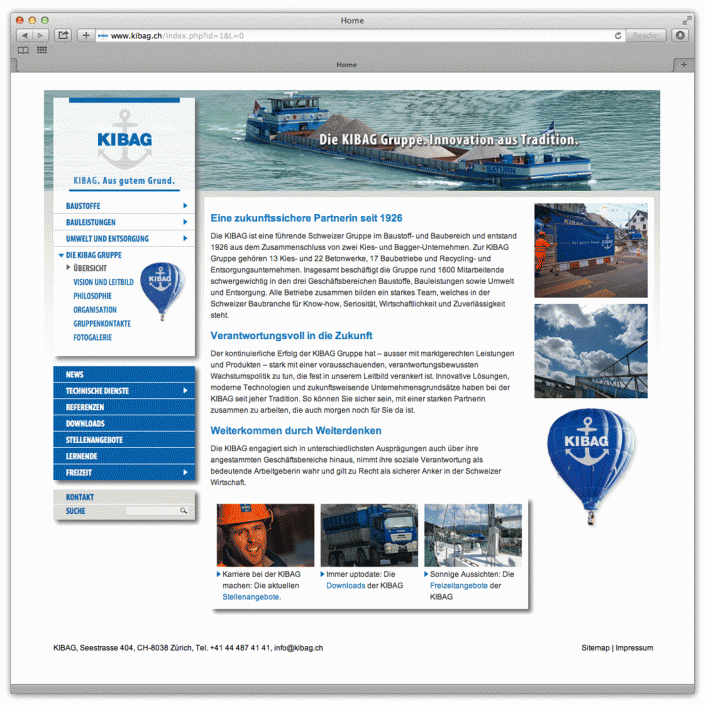 Projekt Website KIBAG Gruppe (www.kibag.ch)